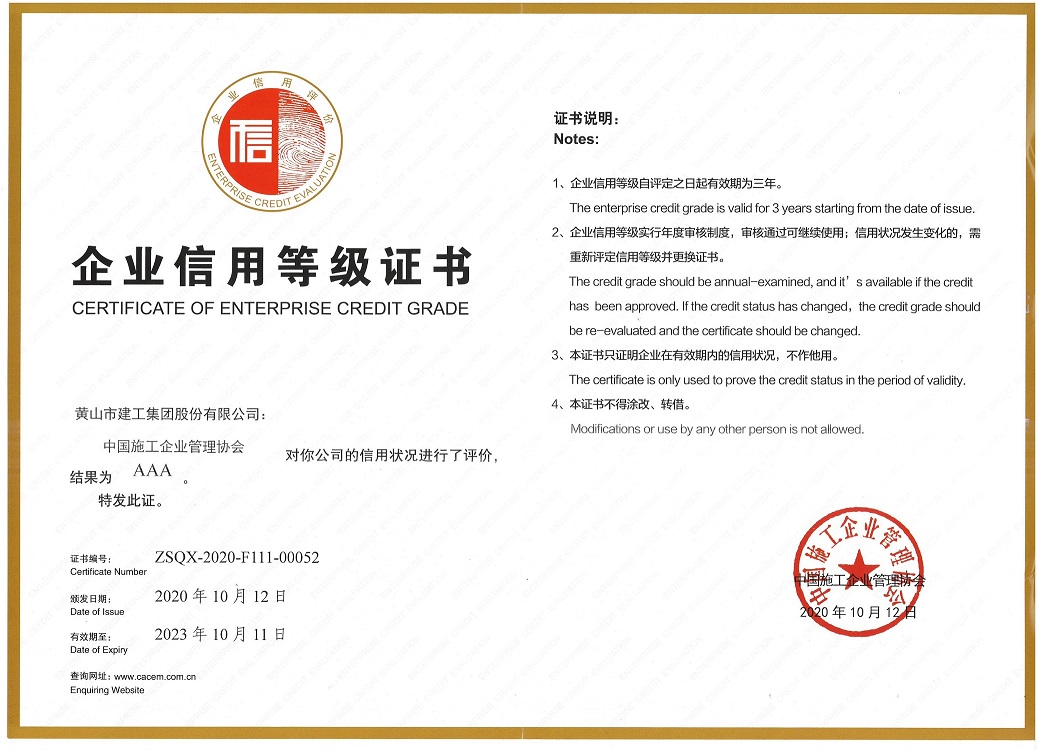 榮譽(yù)的獲得,是對黃山建工集團(tuán)近年來信用體系建設(shè)工作的充分肯定,公司將進(jìn)一步規(guī)范管理,增強(qiáng)誠信意識,守信踐諾,為工程建設(shè)行業(yè)的持續(xù)健康發(fā)展做出新貢獻(xiàn)。