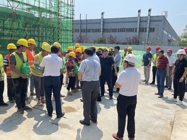 近日,黃山市天氣持續(xù)高溫酷熱,驕陽似火,黃山博盛消防裝備有限公司新廠區(qū)1-2#車間及研發(fā)中心工人仍堅守在施工一線,頂烈日,搶工期。7月26日上午,屯溪區(qū)委書記吳旭光、區(qū)委副書記、區(qū)長楊林,區(qū)人大常委會主任朱學軍,區(qū)政協(xié)主席袁震宇,區(qū)政協(xié)副主席杜祖紅等一行深入工地現(xiàn)場,開展“送清涼進工地”活動,看望慰問項目部一線職工。