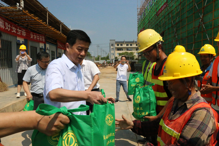 在項目施工現(xiàn)場,區(qū)委書記吳旭光代表區(qū)委區(qū)政府向在高溫下作出辛勤工作的工人們表示深深的敬意,將防暑降溫物品送到他們手中,并叮囑他們要勞逸結(jié)合,注意身體健康。并要求項目部要科學安排作息時間,制定高溫應(yīng)急預(yù)案,加強施工現(xiàn)場安全管理,確保高溫時期工地安全生產(chǎn)形勢穩(wěn)定。