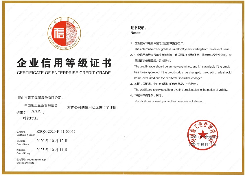 中國施工企業(yè)AAA級信用企業(yè)